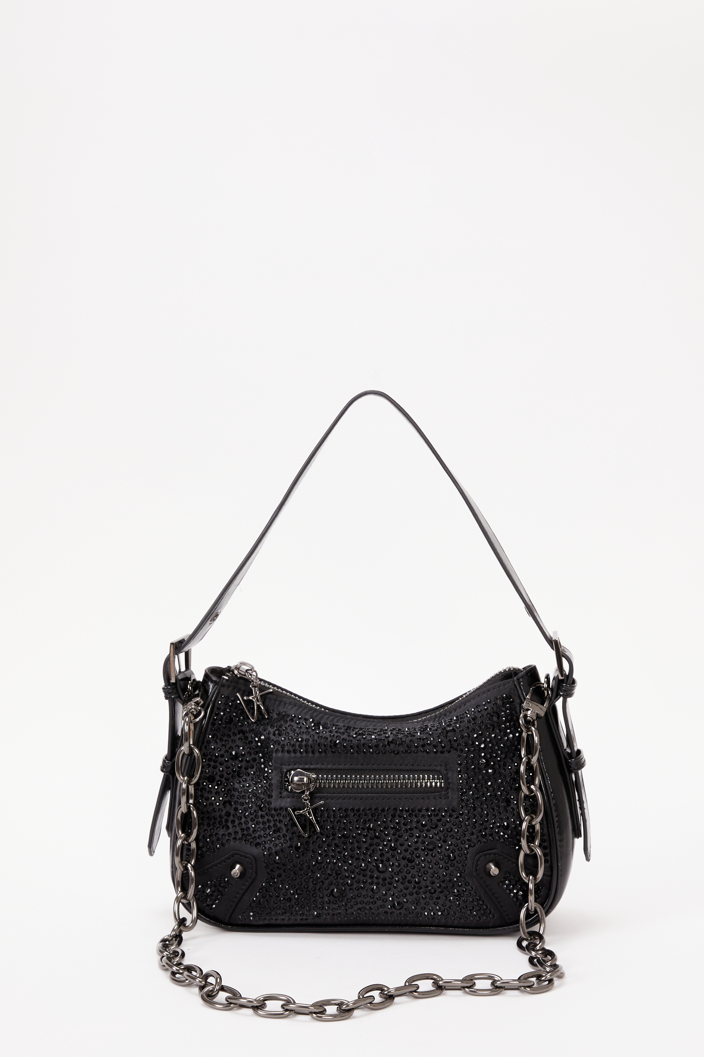 Cartera confeccionada en un material impermeable, con efecto arrugado y estructura blanda. Su medida es grande como para llevar lo que quieras y que te acompañe todo el día. Posee una cadena metálica bañada en color peltre y su acceso es mediante un mecanismo de ajuste diseñado específicamente para la misma. Se destaca por los dos cierres metálicos decorativos que tiene en su frente. Al poseer una estructura blanda permite generar diferentes formas y adaptarse según su relleno. Esta cartera tiene un bolsillo interior y forreria personalizada de la marca. Medidas: 40 cm x 30 cm