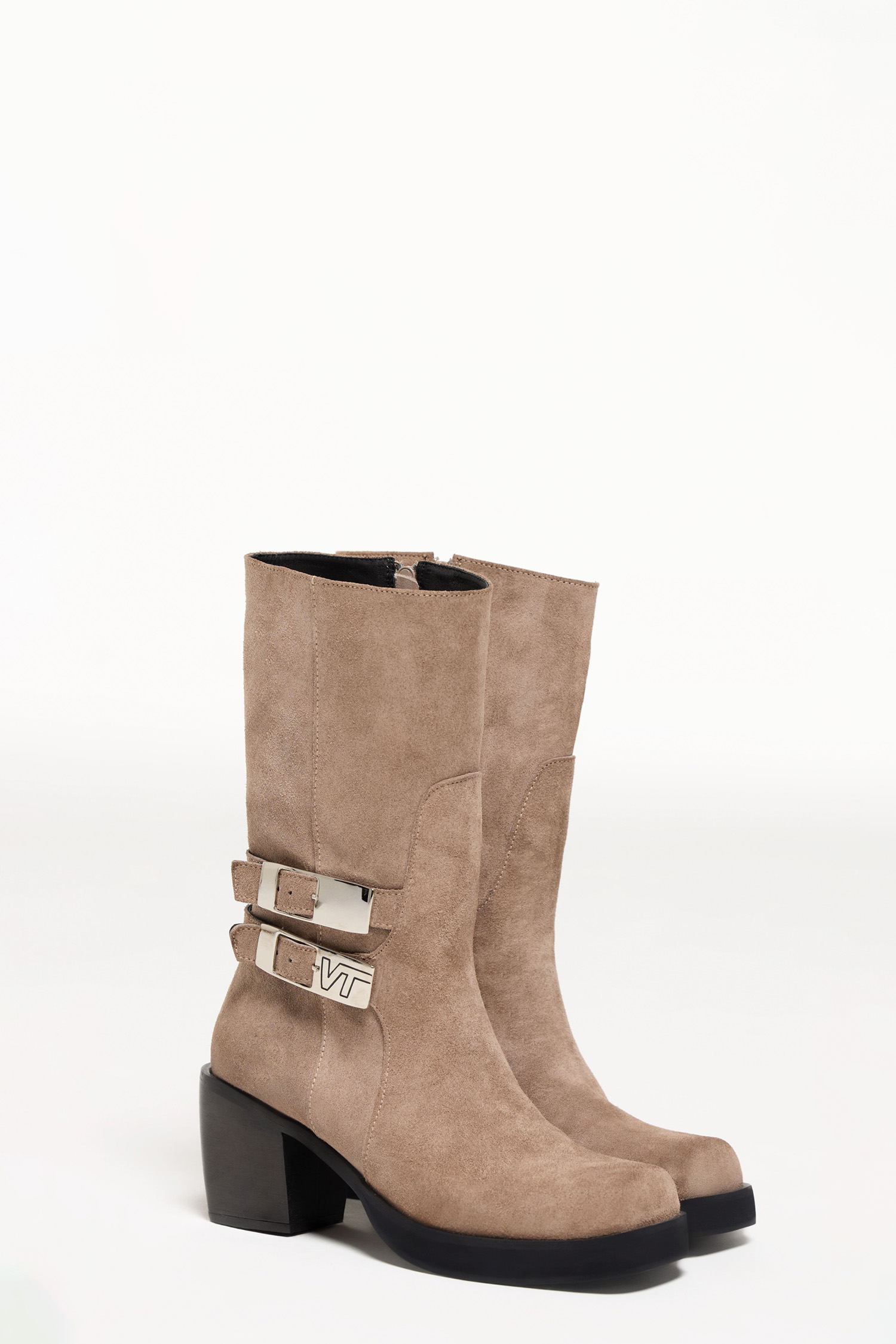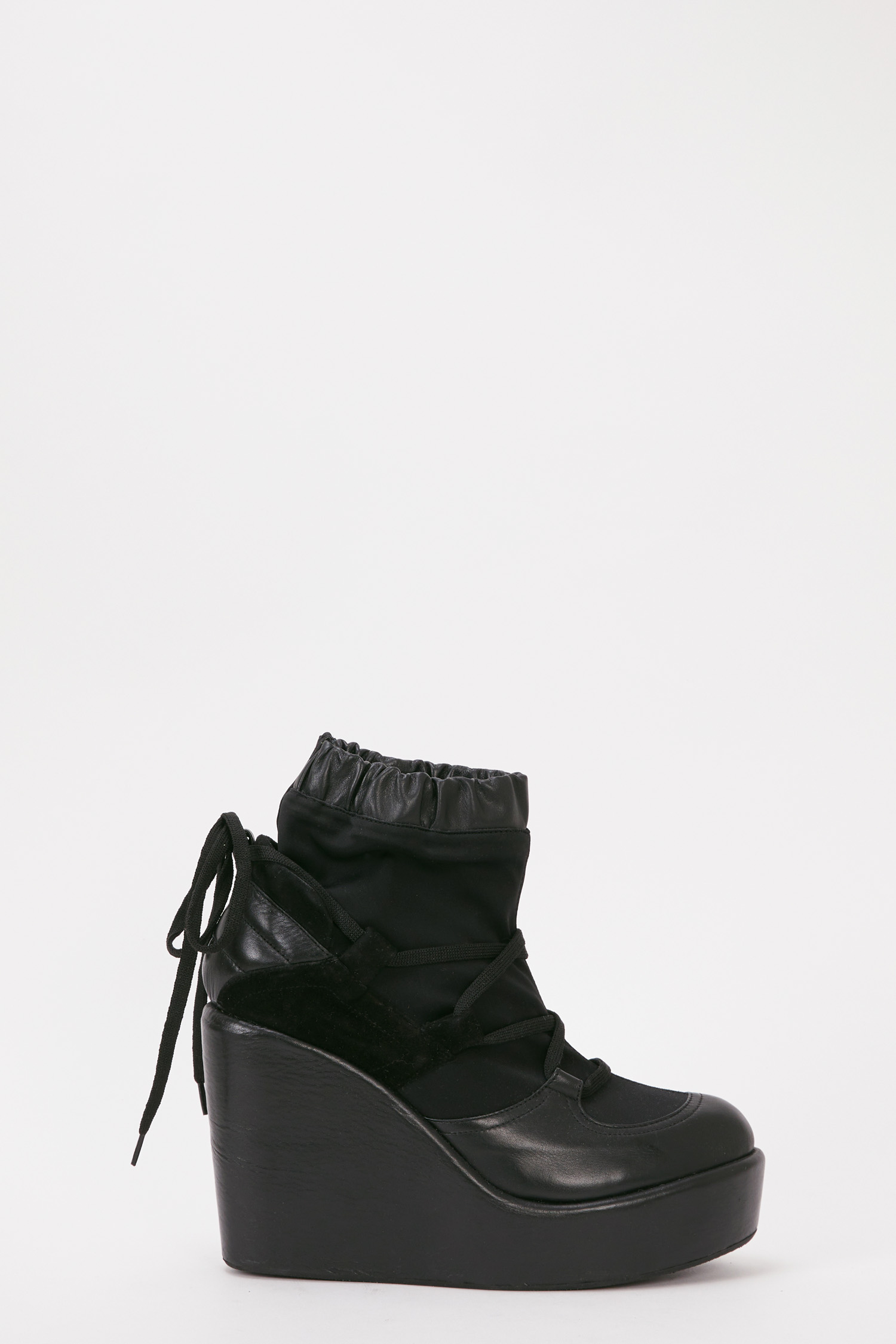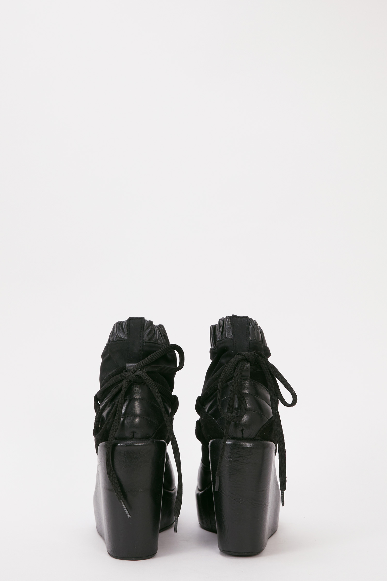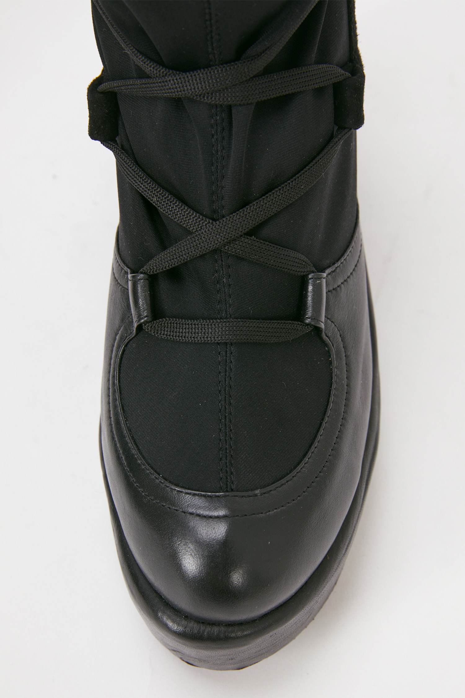 ZAPATO CON PLATAFORMA. SU CAPELLADA ES DE PUNTO CON COMBINACÓN DE CUERO. ALTURA DE TACO: 11CM