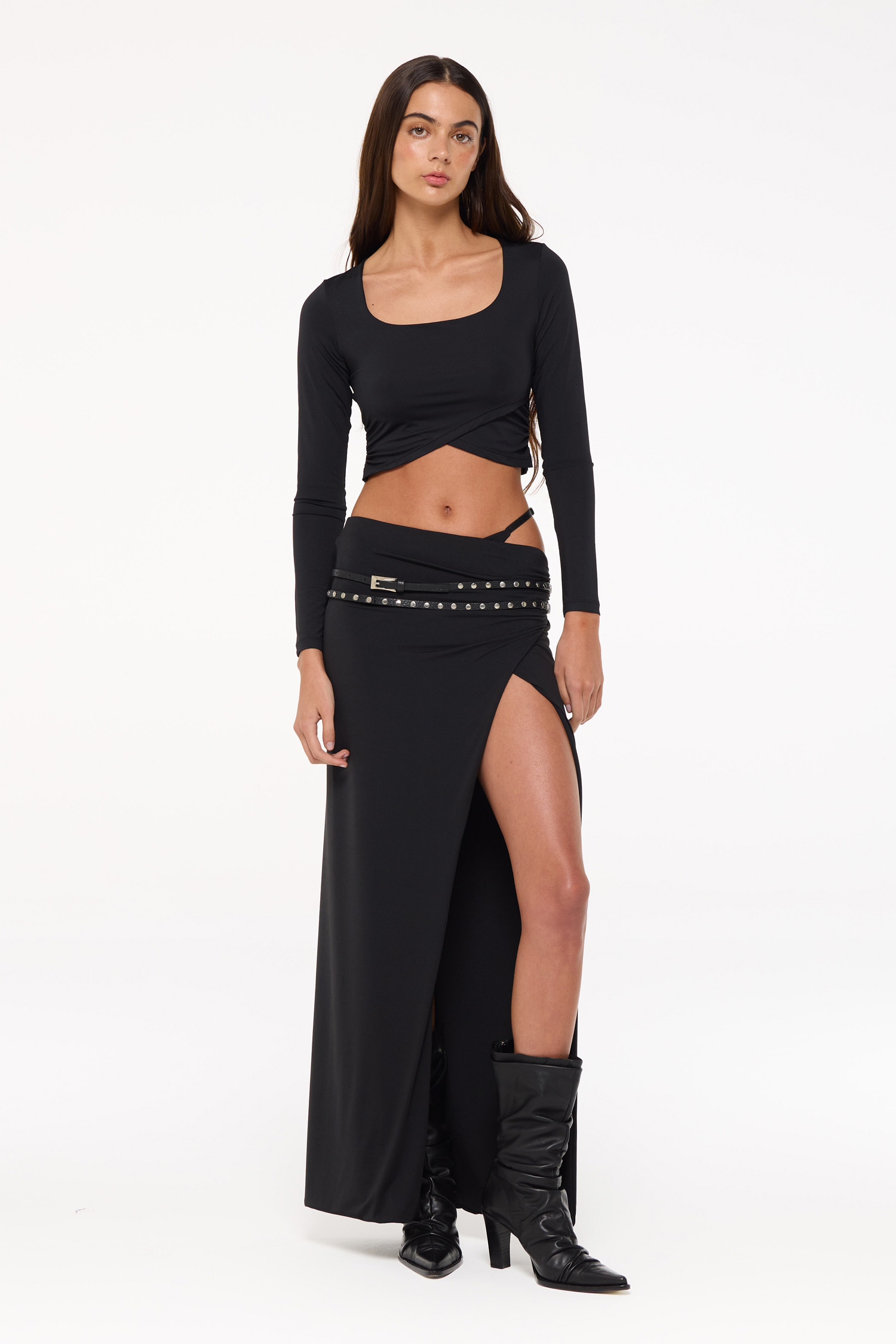 TOP MANGA LARGA CON DETALLE IRREGULAR EN SU RUEDO. ESTÁ CONFECCIONADO EN TEJIDO DE PUNTO LO CUAL HACE QUE SEA SÚPER CÓMODO. PODES COMPLETAR EL LOOK CON LA FALDA HERA
