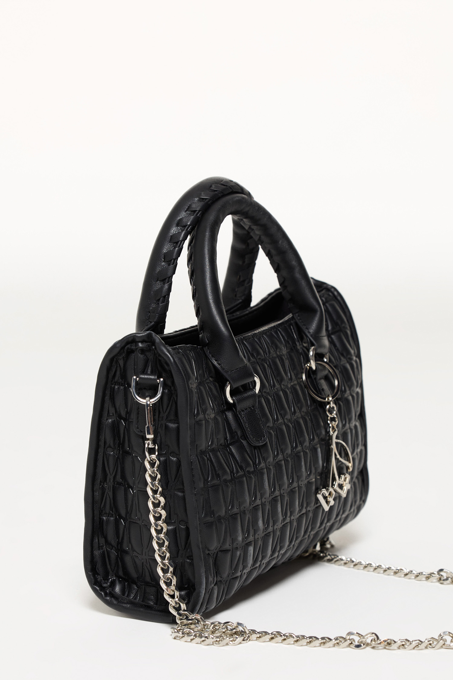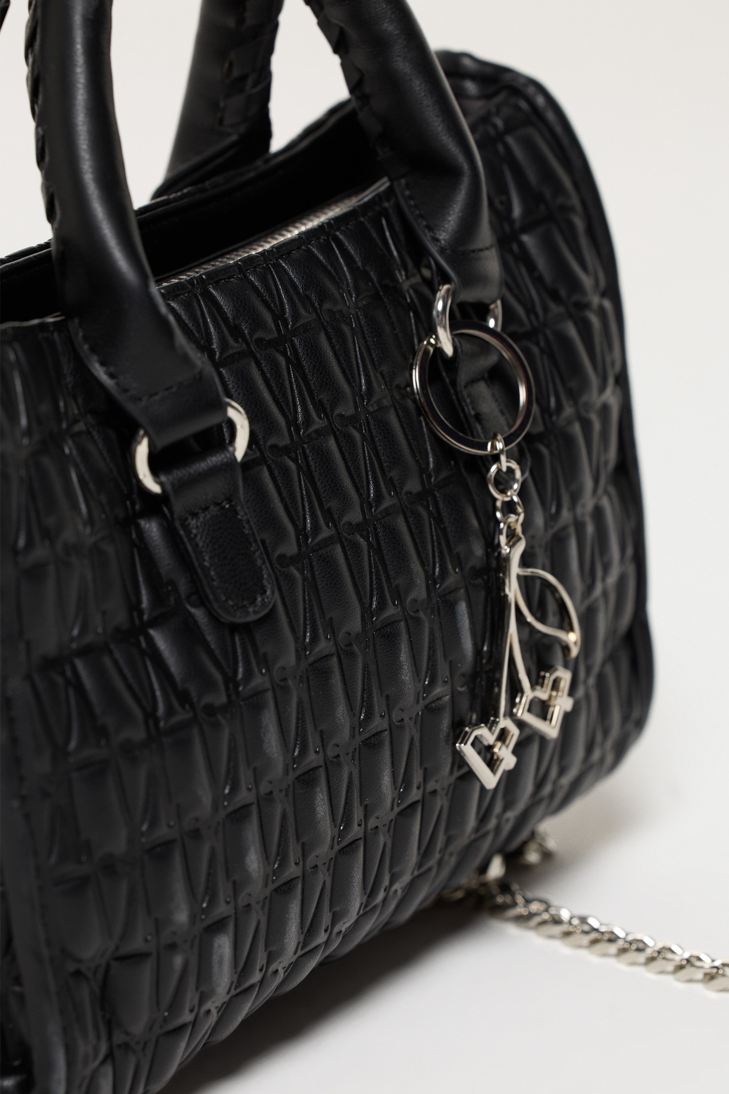 La cartera devotion está confeccionada en símil cuero con un leve relleno que le da un efecto acolchonado. El mismo tiene un gofrado con nuestro icónico monogram. Tanto su forro como sus herrajes son personalizados con el logo de la marca. Esta cartera cuenta con un compartimento principal y un bolsillo adicional para una mayor organización. Sus manijas son cortas e incluye una cadena larga desmontable para usarla colgada también. Como detalle a destacar, contiene un llavero con las cerezas características de la marca, el cual es posible poner y sacar. Esta cartera cuenta con ferrería personalizada.