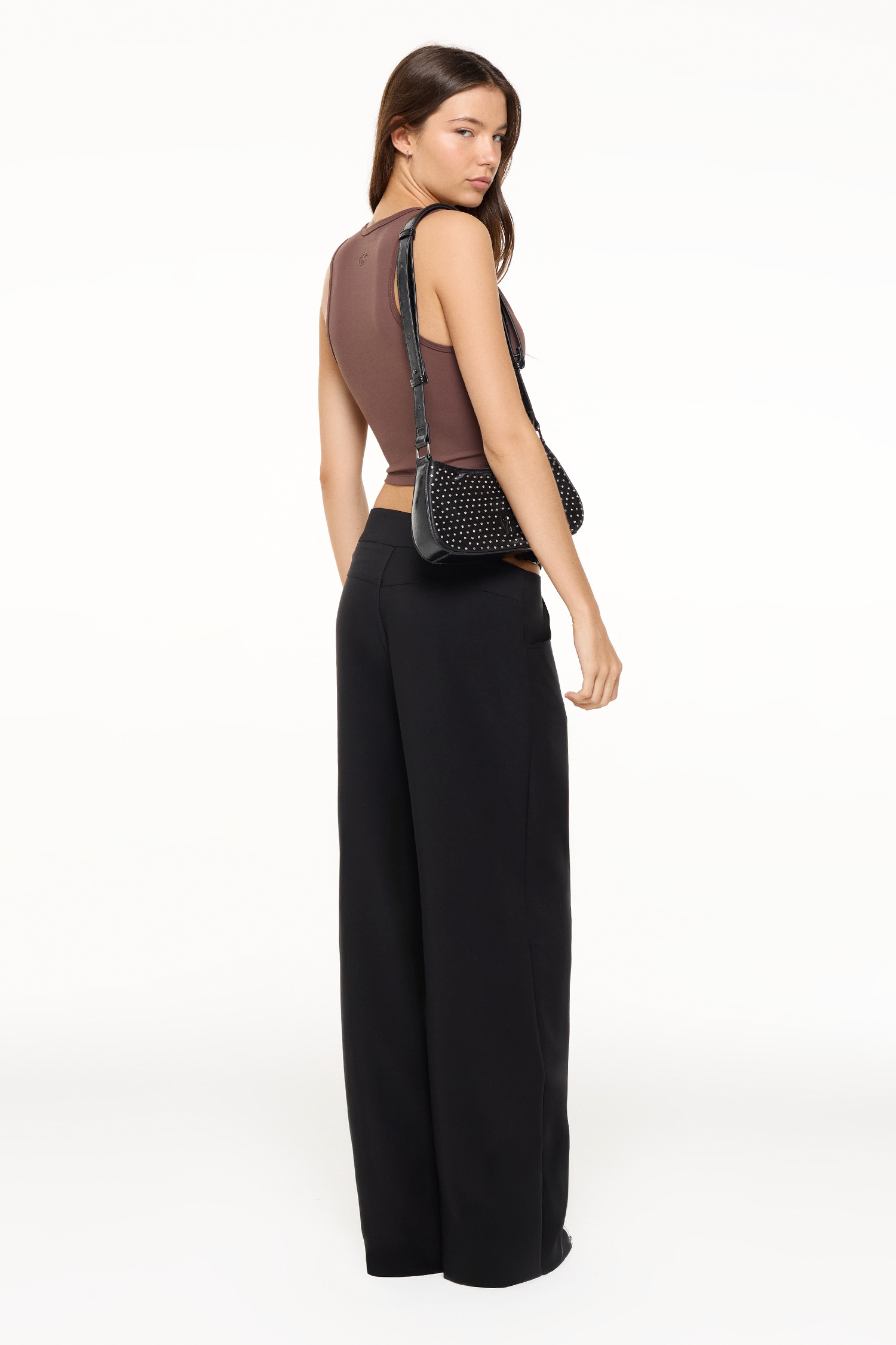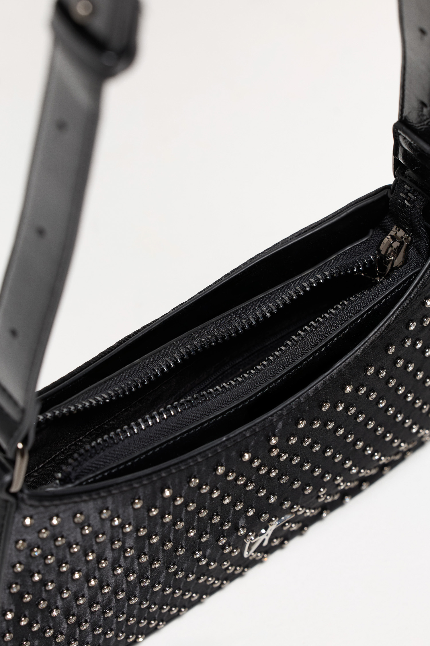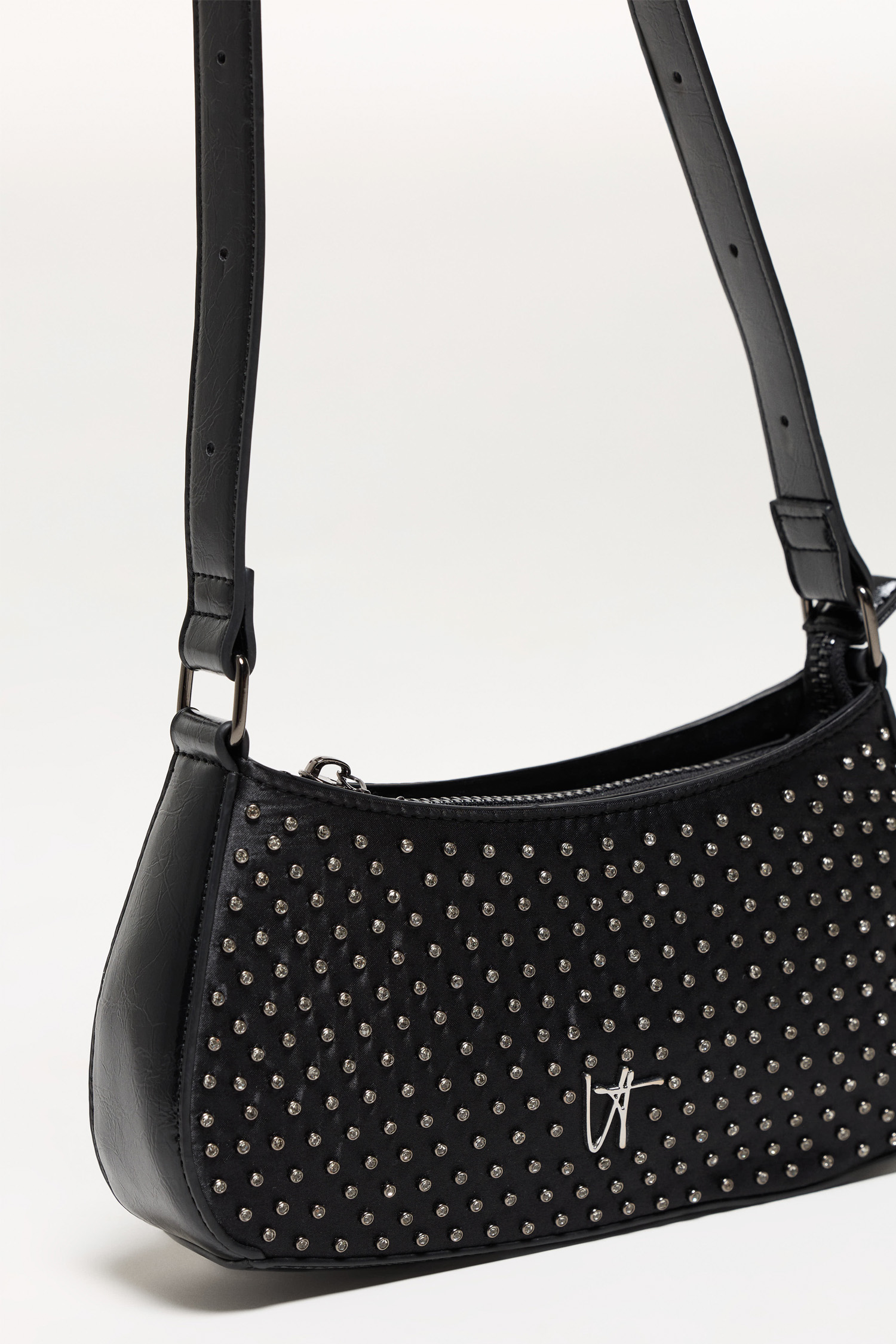 La cartera Guilty, confeccionada en un género satinado con remaches de strass, es perfecta para salir. Destaca por su correa maleable y su acceso con tiracierre de la marca. Tiene bolsillo interior y forrería personalizada. Perfecta para destacar cualquier look.