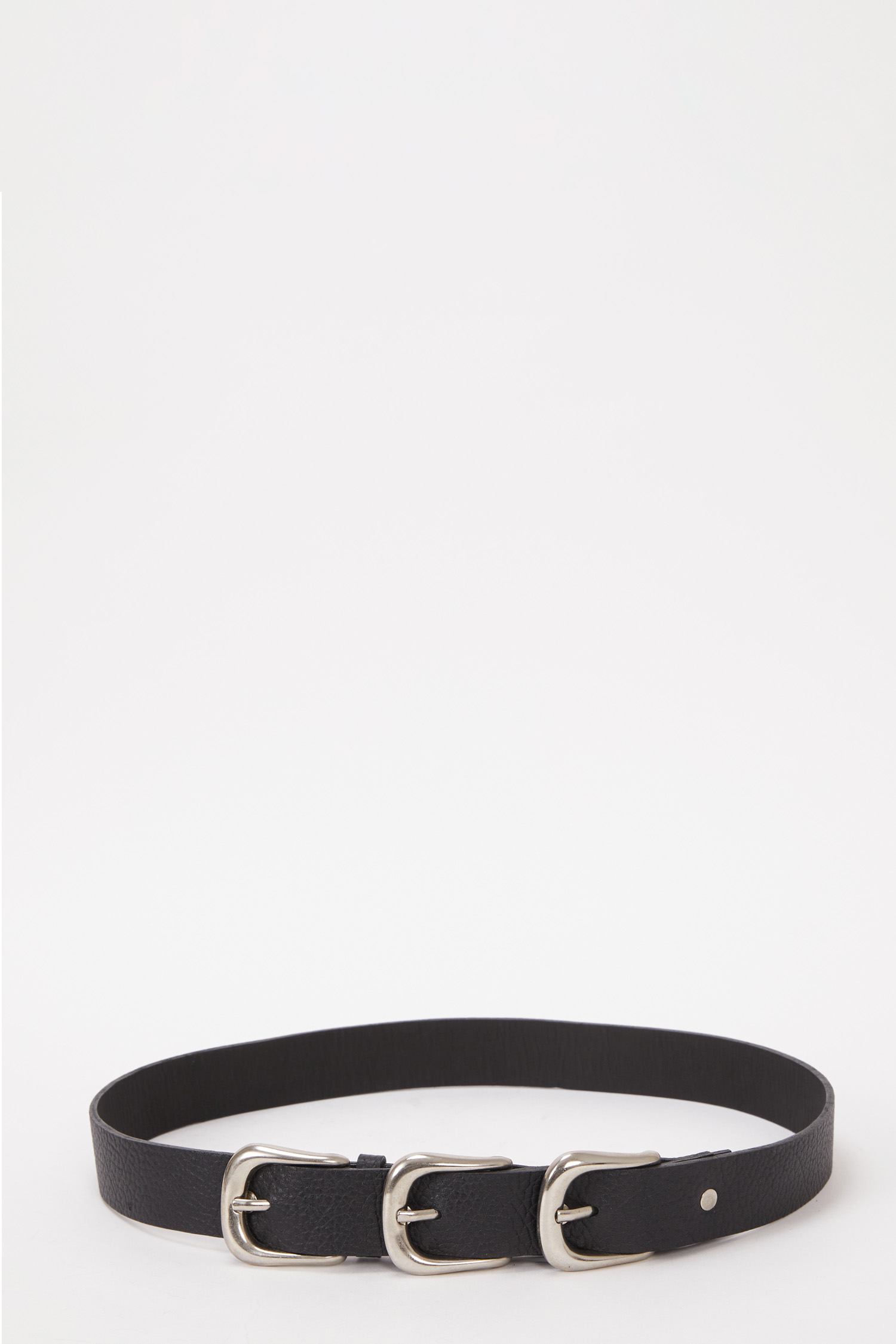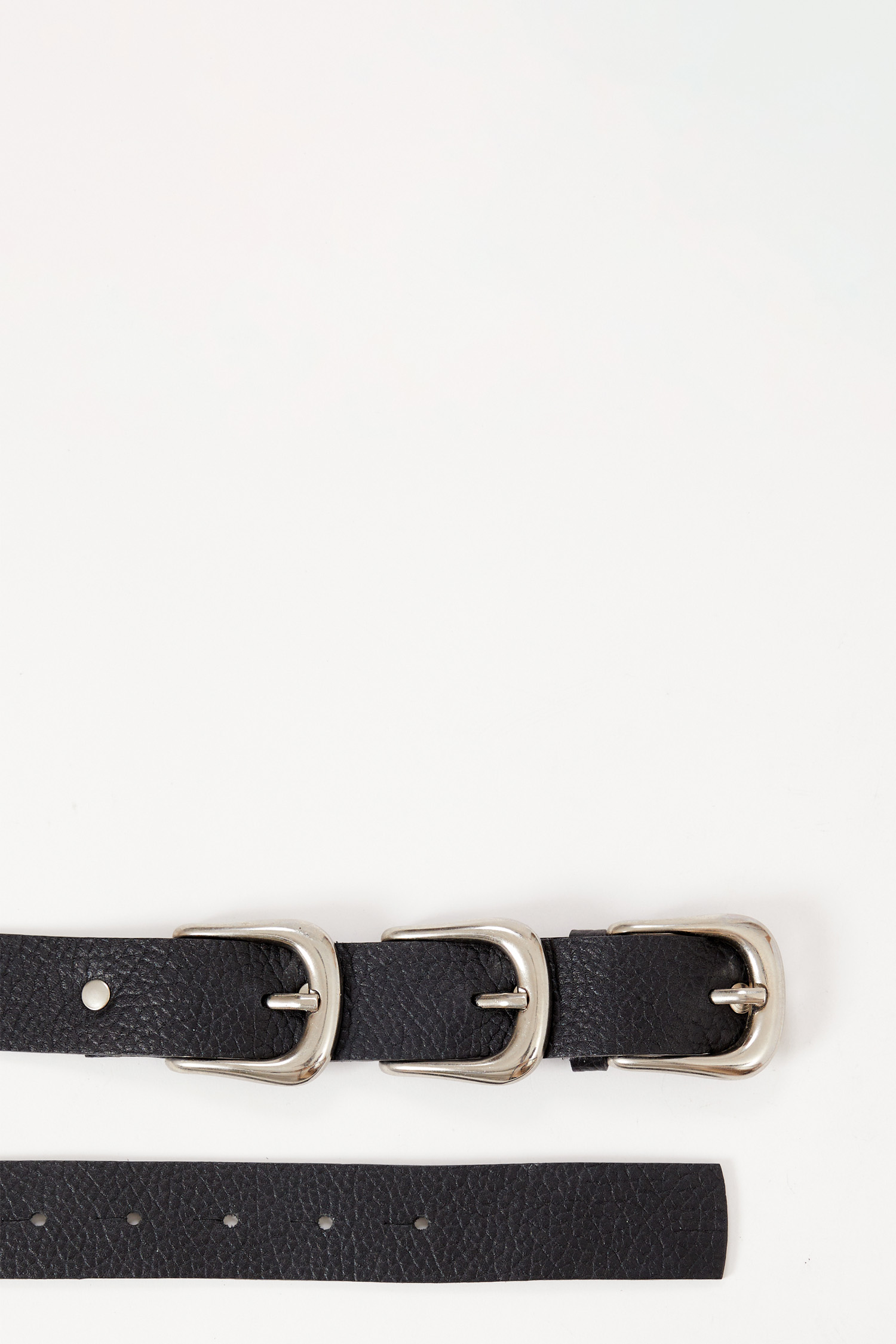 Un básico reversionado. Para los que levantamos los looks con accesorios, nuestro cinturon Triple tiene tres hebillas metálicas que te elevan cualquier look en segundos.