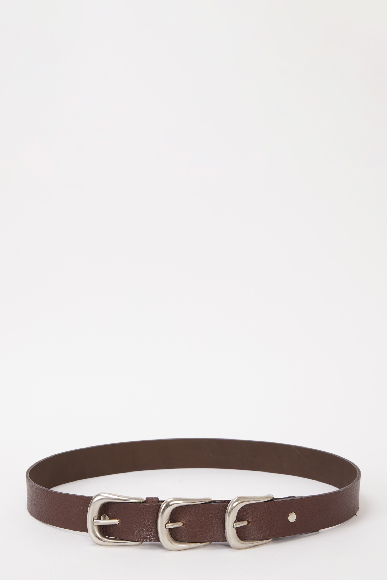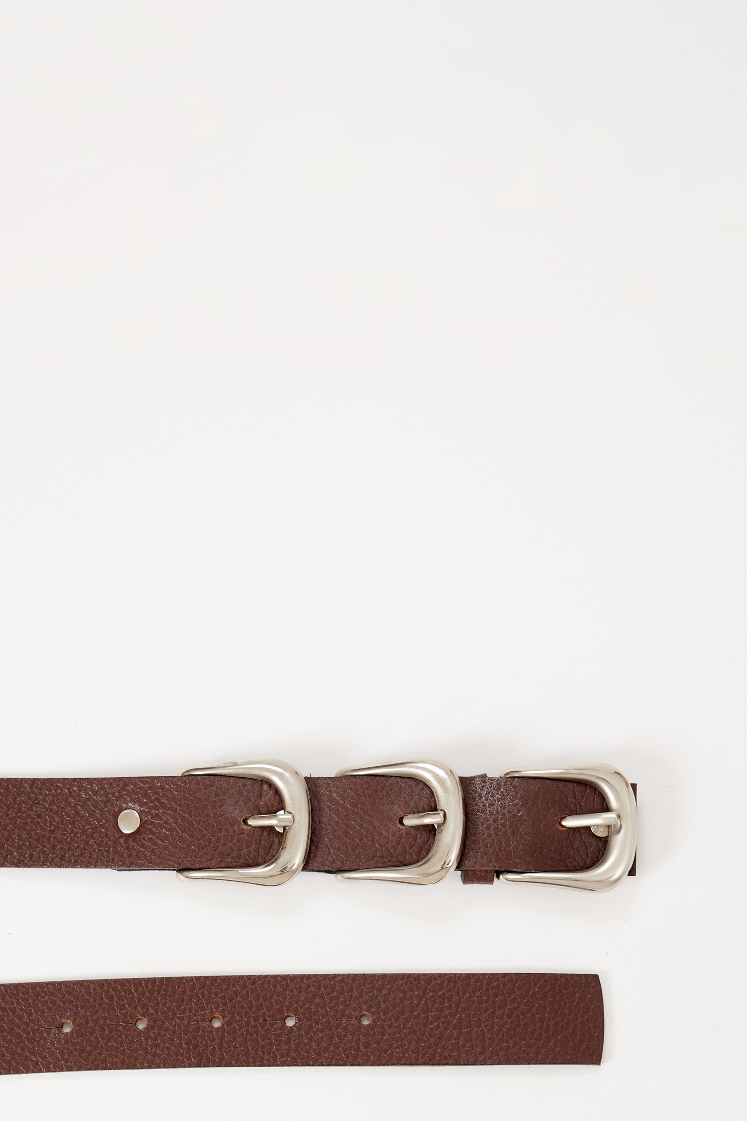 Un básico reversionado. Para los que levantamos los looks con accesorios, nuestro cinturon Triple tiene tres hebillas metálicas que te elevan cualquier look en segundos.