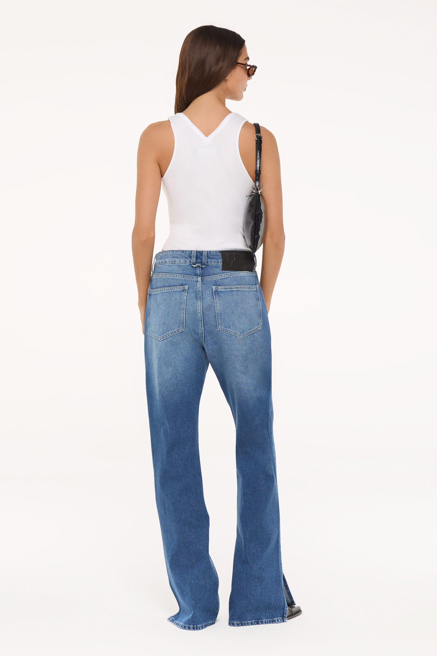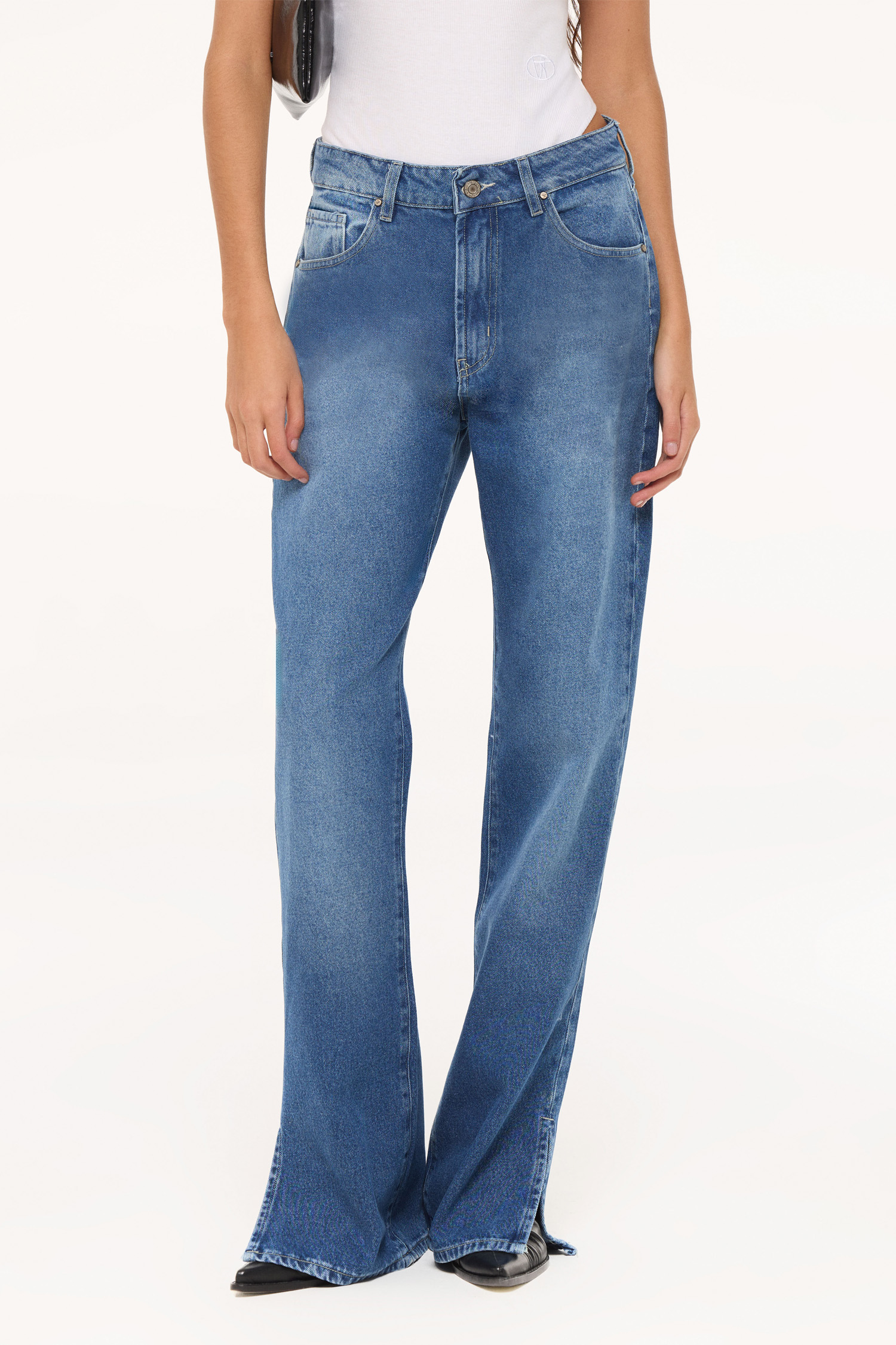 Pantalón de denim tiro extra alto fit straight confeccionado en tejido premium 100% algodón. Tiene un lavado indigo medio con desgastes estratégicos que realzan la silueta generando un look moderno y descontracturado. Su fit straight con split en bota lo convierte en una prenda súper versátil: ideal tanto para looks casuales con zapatillas como para outfits más chic con botas. Botón, remaches y badana exclusivos de la marca.