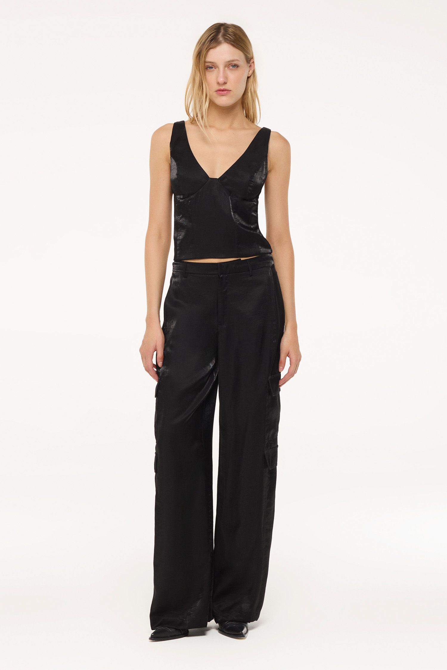 LAVAR A MAQUINA DEL REVÉS CON AGUA FRIA / NO USAR BLANQUEADOR / NO RETORCER / CENTRIFUGAR / NO SECAR CON CALOR / PLANCHA MODERADA CON PAÑO