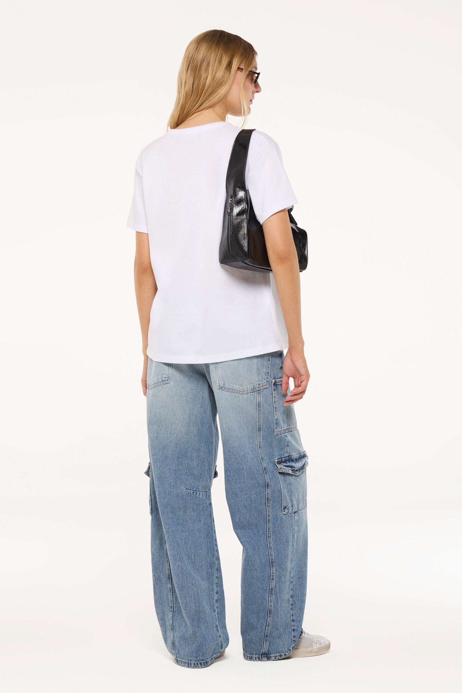 LAVAR A MAQUINA DEL REVÉS CON AGUA FRIA NO USAR BLANQUEADORES CENTRIFUGAR NO DOBLAR LA PRENDA HUMEDA NO SECAR CON CALOR PLANCHA MODERADA NO PLANCHAR SOBRE ESTAMPA