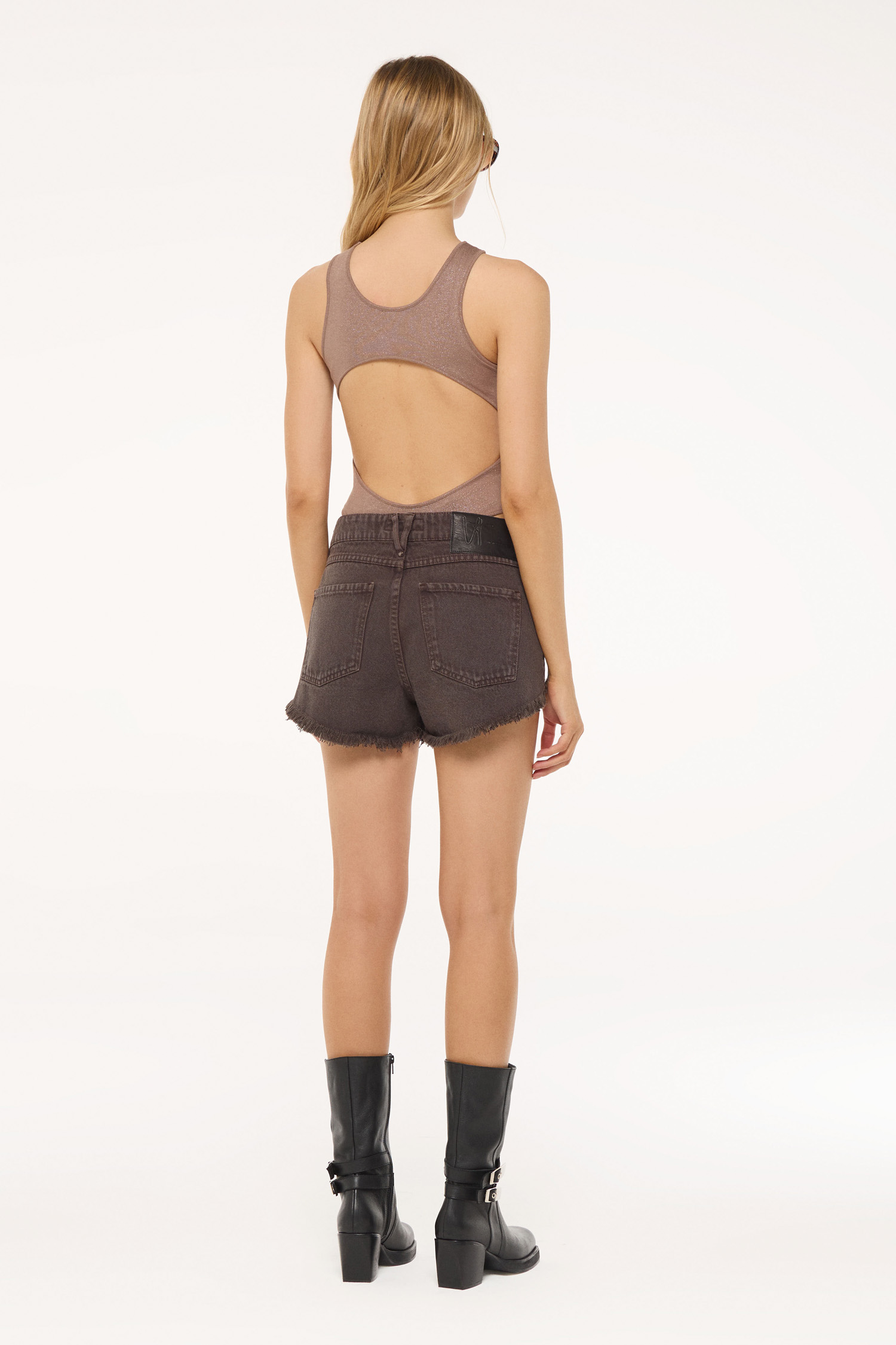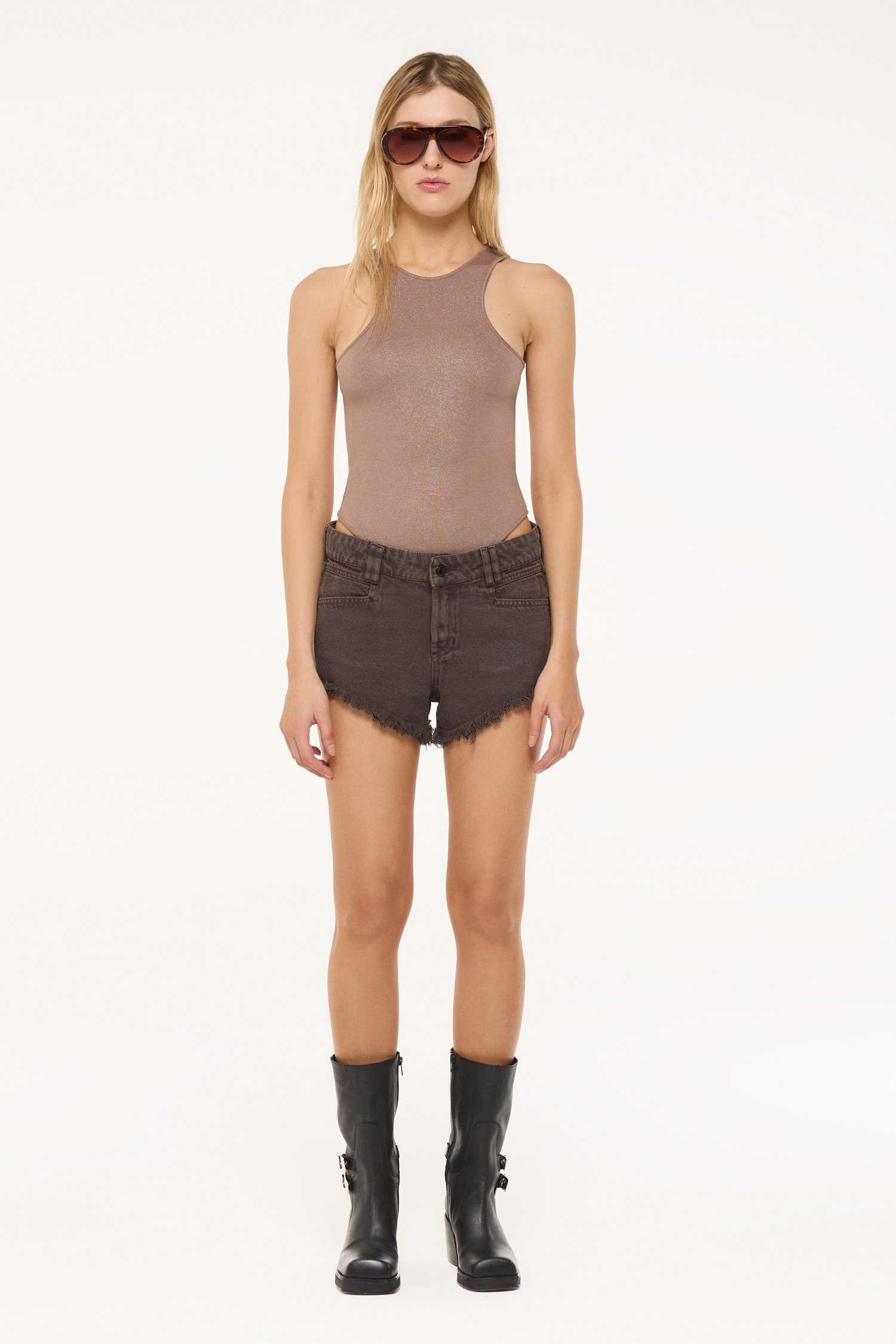 El básico elevado que tu vestidor estaba necesitando. Este body está confeccionado en jersey de viscosa con glitter, una tela suave, liviana y con un sutil efecto shimmer que le suma un toque especial. Tiene escote cerrado, espalda cavada ,ideal para usar de día con jeans o a la noche con sastrería o cuero. Una prenda versátil y cómoda