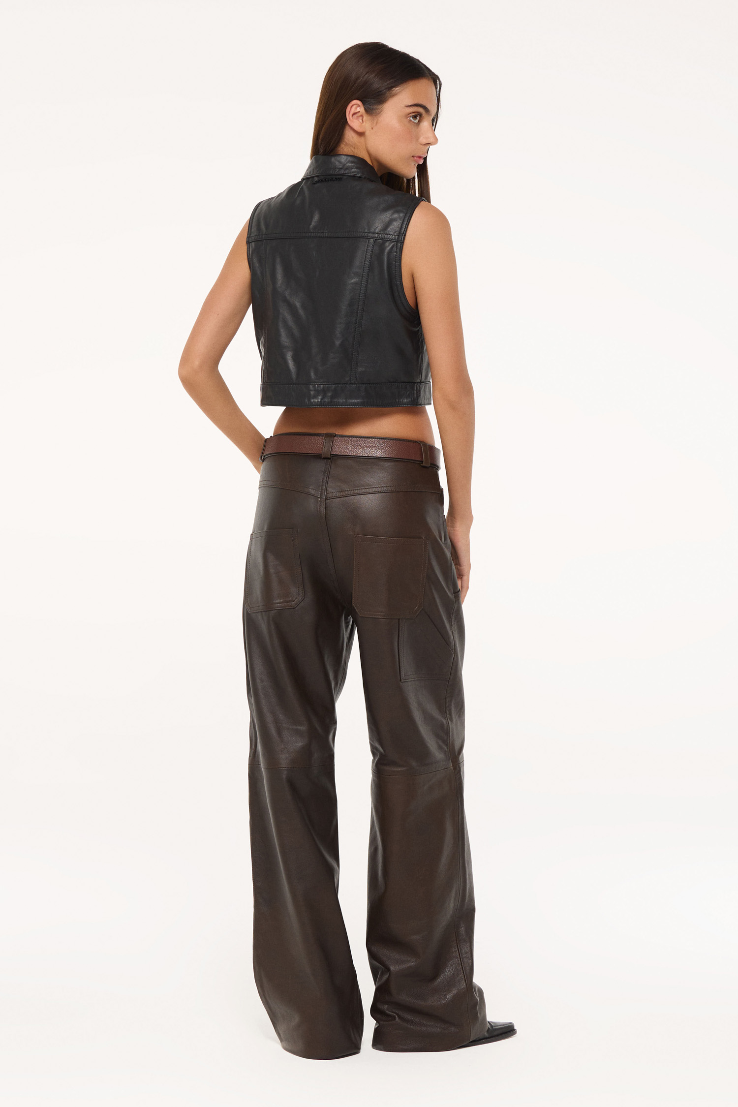 Este chaleco confeccionado en 100% cuero vacuno es súper canchero para complementar todos tus looks. Su silueta boxy lo convierte en una prenda versátil, ideal para looks urbanos. Su acceso es por medio de botones metálicos a presión . Perfecto para llevar solo o como complemento sobre otras prendas.
