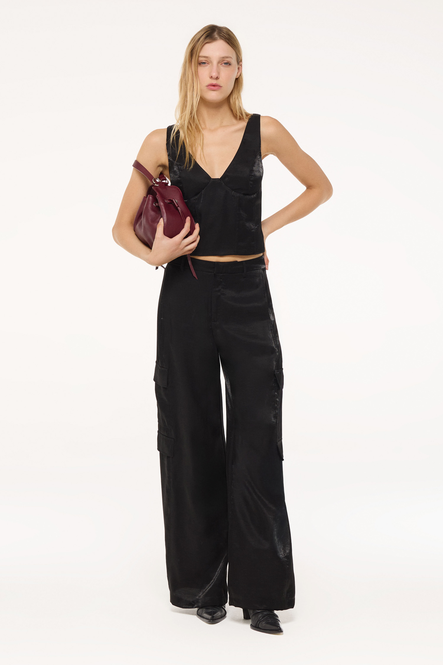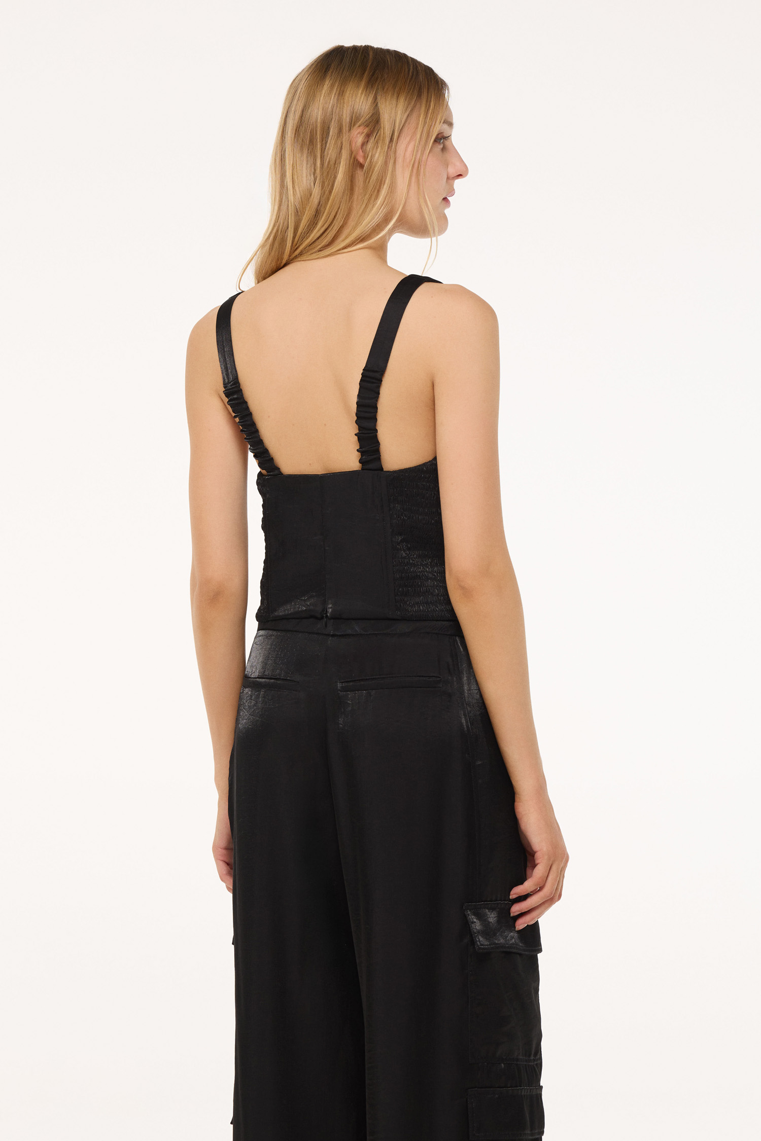 Nuestro top Lercy es todo lo que necesitas para levantar un look. Su fit es anatómico con detalles de punto smock en laterales que ayudan a elastizar y brindar comodidad. Confeccionado en un genero con brillo sutil, tiene un escote en V bien marcado y tirantes anchos que lo hacen cómodo y canchero. Sus recortes con ballenas ayudan a que quede perfecto y realcen tu figura.